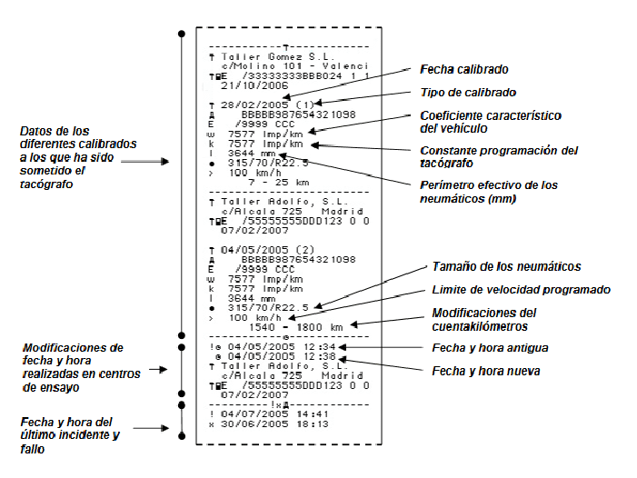 Qué partes tiene un ticket del tacógrafo