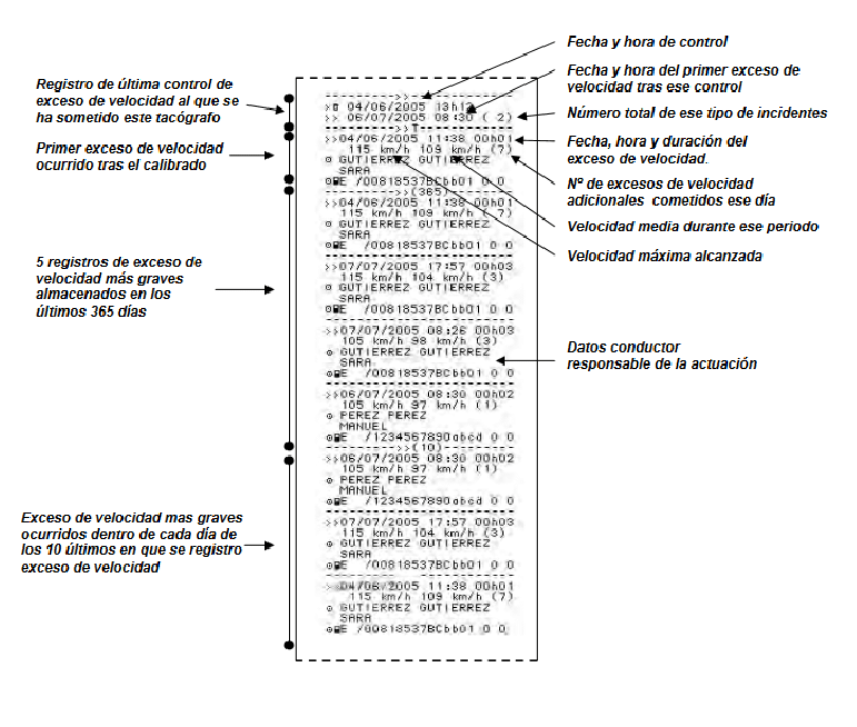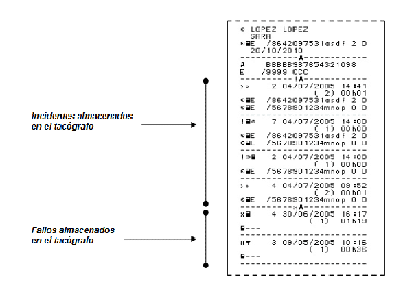 - Incidentes y fallos registrados en el tacógrafo. Pueden pedirlo en un control de carretera.